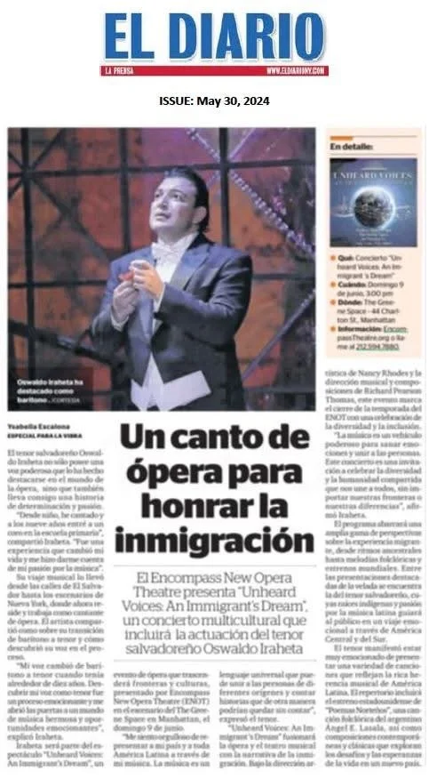 Last season, under the extraordinary and thoughtful leadership of Nancy Rhodes, Encompass New Opera Theatre presented a program that originated during the pandemic. Unheard Voices: An Immigrant’s Dream is a program to help showcase stories of immigration and celebrate cultural diversity.